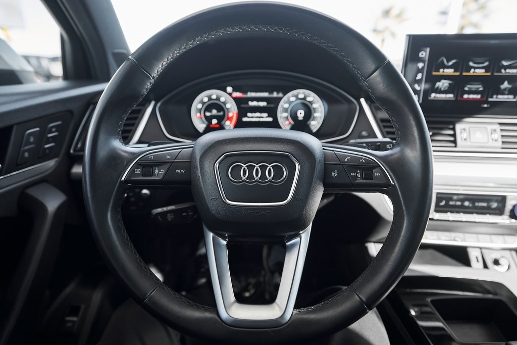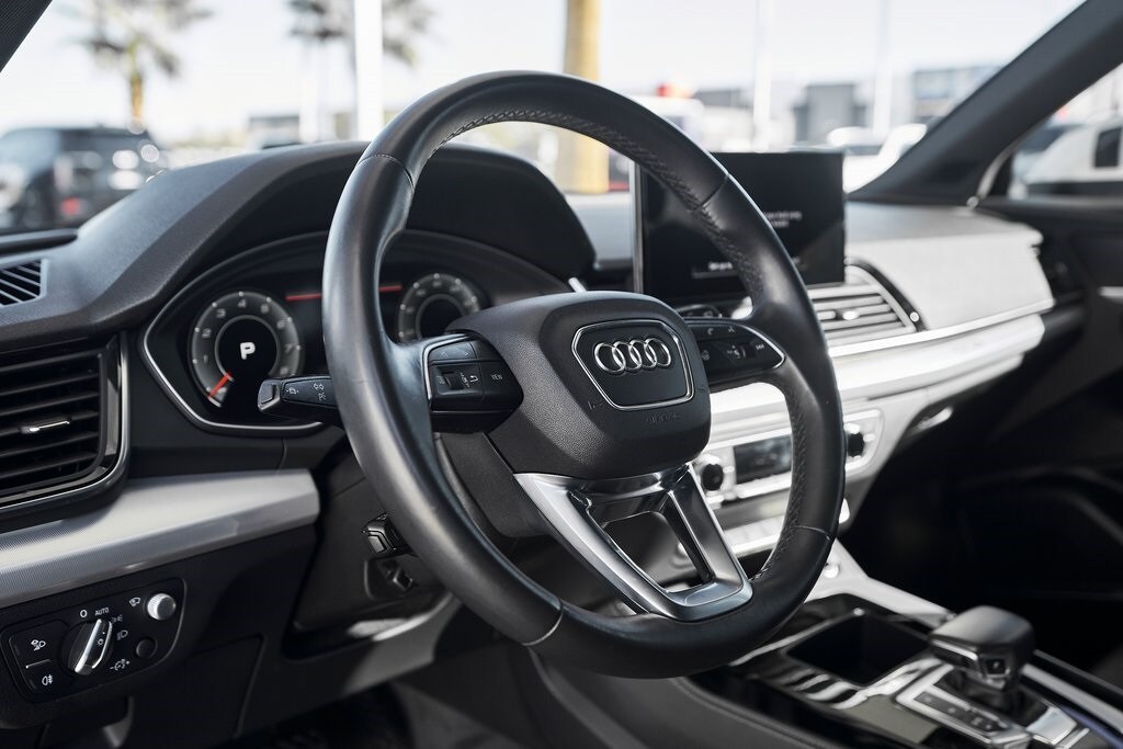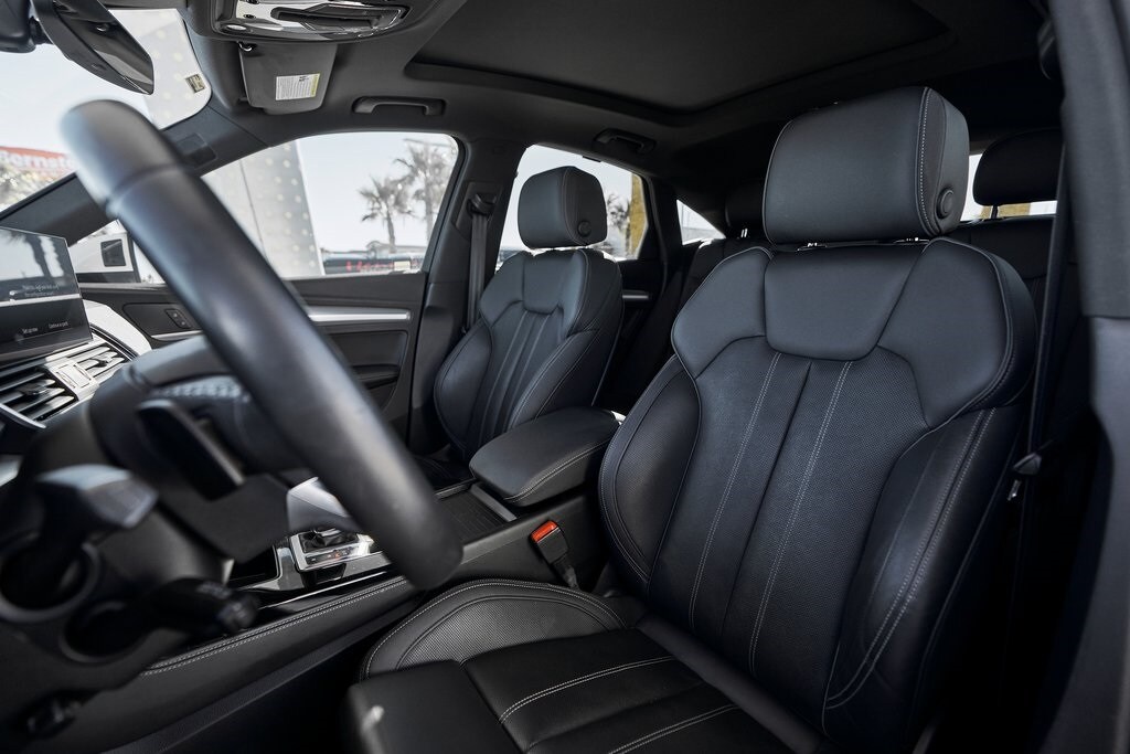 The 2021 Audi Q5 Sportback perfectly blends coupe-like style with SUV versatility, offering a dynamic driving experience wrapped in Teutonic sophistication. Powering the Q5 Sportback is a 2.0-liter turbocharged inline-four engine paired with Audi's mild-hybrid system, producing 261 horsepower and 273 lb-ft of torque. Power is delivered through a 7-speed dual-clutch transmission and quattro all-wheel drive, ensuring confident grip and smooth, responsive acceleration in all conditions. The Sportback's design is both athletic and refined. Its fastback roofline, wide single-frame grille, and LED Matrix-design headlights give it a distinctive presence, while the Prestige trim adds subtle luxury through chrome accents, panoramic glass, and 21-inch wheels. Inside, the Q5 Sportback is a showcase of Audi craftsmanship. The cabin features premium leather upholstery, aluminum inlays, and ambient interior lighting that can be matched to the mood. The 12.3-inch Audi Virtual Cockpit, paired with a 10.1-inch touch display, provides intuitive access to navigation, entertainment, and vehicle settings. A Bang & Olufsen 3D Premium Sound System, heated and ventilated front seats, and head-up display ensure every journey feels first-class.