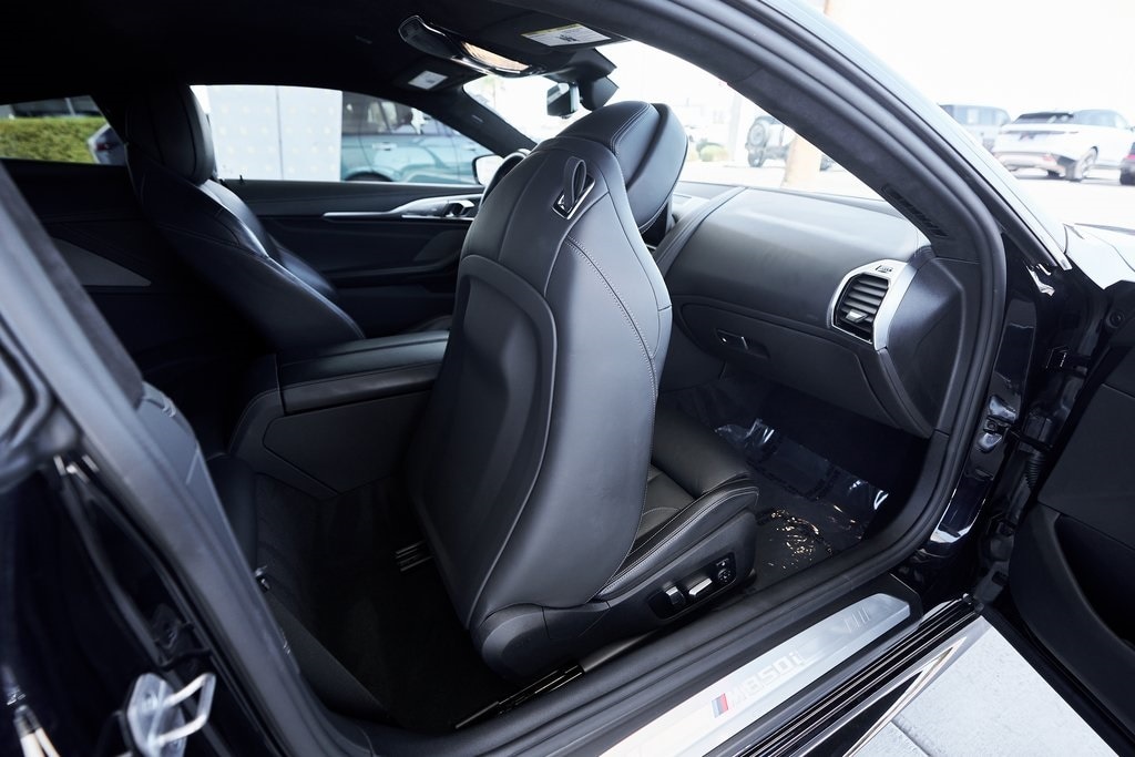 As part of the brand's flagship 8 Series lineup, the 2024 BMW M850i is designed to deliver a driving experience that is both refined and thrilling, whether cruising across long stretches of highway or carving through winding backroads. At its heart lies a 4.4-liter twin-turbocharged V8 engine, producing an exhilarating 523 horsepower and 553 lb-ft of torque. Paired with an 8-speed automatic transmission and BMW's xDrive all-wheel-drive system, the 850i rockets from 0-60 mph in just 3.5 seconds. Adaptive M suspension, rear-wheel steering, and active roll stabilization ensure that the 850i handles with the agility of a sports coupe while maintaining the ride comfort expected from a grand tourer. The exterior design is sleek and commanding, with a wide, low stance that emphasizes its performance pedigree. Iconic BMW kidney grilles, slim laser headlights and sculpted aerodynamic lines give the 850i a presence that's equal parts elegance and aggression. Inside, the cabin is pure modern luxury. Rich materials such as Merino leather upholstery, crafted glass controls, and carbon fiber trim highlight BMW's craftsmanship. The 12.3-inch digital instrument cluster and iDrive 8 infotainment system provide seamless connectivity and intuitive controls. Climate controlled seats, along with ambient lighting and a panoramic glass roof, ensure comfort for every journey.