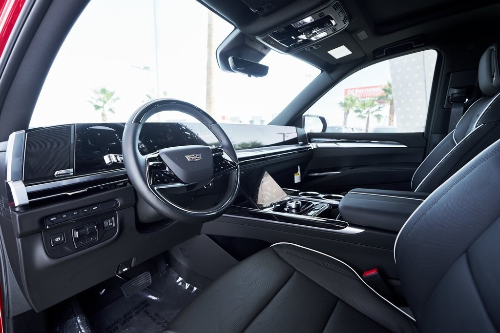 With its iconic styling, spacious three-row interior, and premium features, the Cadillac Escalade continues to set the benchmark for American luxury. Powering this Escalade is a 6.2-liter V8 engine delivering 420 horsepower and 460 lb-ft of torque, paired with a smooth 10-speed automatic transmission. Available with Cadillacs Magnetic Ride Control and Adaptive Air Ride suspension, the Escalade offers a remarkably comfortable driving experience. The Premium Luxury trim elevates the interior with semi-aniline leather seating surfaces, genuine wood trim, and brushed metal accents. The driver is greeted by Cadillacs groundbreaking curved OLED display system, a 38-inch screen that seamlessly integrates the digital instrument cluster, infotainment, and vehicle controls in stunning clarity. Passengers enjoy first-class accommodations, with features like heated and ventilated front seats, as well as a premium 19-speaker AKG Studio audio system that surrounds the cabin in concert-level sound. Practicality meets luxury with ample cargo space, power-folding third-row seats, and tri-zone climate control to keep everyone comfortable. Advanced driver-assistance features, including Adaptive Cruise Control, Enhanced Automatic Emergency Braking, Lane Keep Assist, Blind Zone Alert, and a 360-degree camera system, ensure confidence on every drive.