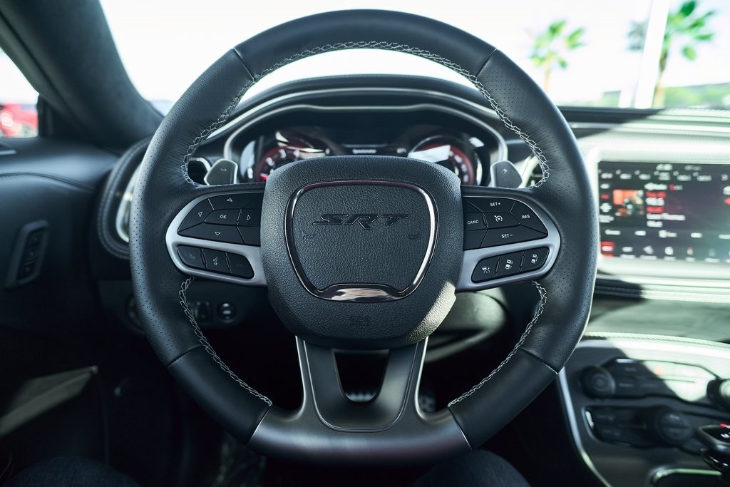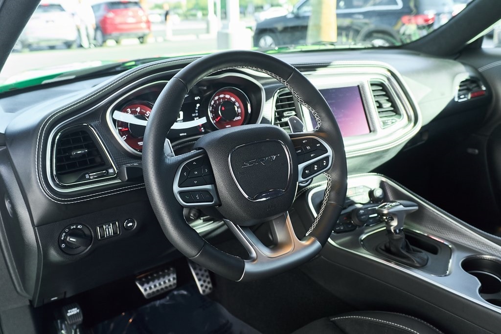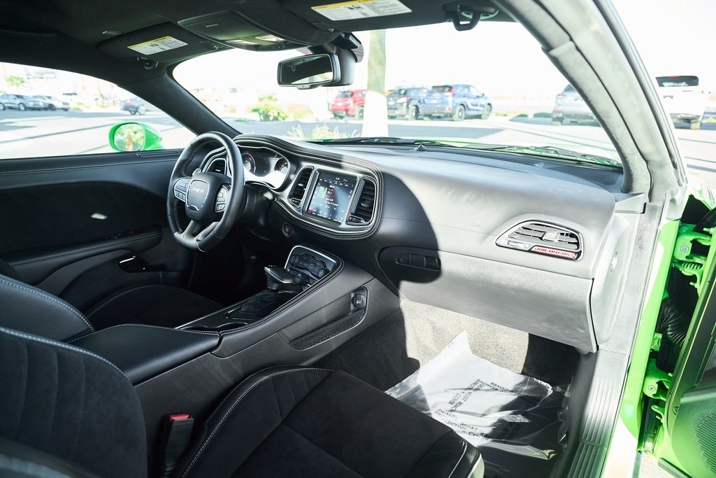 The 2023 Dodge Challenger SRT Hellcat is the ultimate expression of American muscle. Designed to push the limits of performance, the Widebody Jailbreak package takes the already fearsome Hellcat and gives it a more menacing stance. Under the hood roars a 6.2-liter supercharged HEMI V8, delivering a whopping 807 horsepower and 707 lb-ft of torque, making it one of the most powerful production muscle cars ever built. Power is routed through an 8-speed automatic transmission, propelling the Challenger from 0-60 mph in just 3.4 seconds and through the quarter mile in the low 10s. The supercharger's signature whine and the deep growl of the HEMI define its character. Performance enhancements are matched by precision engineering. The adaptive Bilstein suspension, line lock and launch control systems, and massive Brembo brakes provide control worthy of its immense power. Widebody fenders accommodate 305-series Pirelli tires, ensuring traction and presence in equal measure. Visually, the Hellcat Jailbreak makes a statement before it even starts. A Widebody Competition Suspension set up and larger fender flares differentiate it from lesser Chargers and Challengers. Inside, the driver-centric cabin blends classic muscle cues with modern technology. The Uconnect 4C system with an 8.4-inch touchscreen, Performance Pages telemetry, and Launch Assist interface make it both connected and powerful. Heated/ventilated seats, Nappa leather/Alcantara upholstery, and a suede headliner round out an interior designed to make high performance feel indulgent. More than a nostalgic throwback, the Dodge Challenger SRT Hellcat is a serious performance machine for those who want unfiltered power, legacy style, and everyday usability. It stands as one of the last of its kind: a naturally aspirated large-V8 coupe built for driving passion.