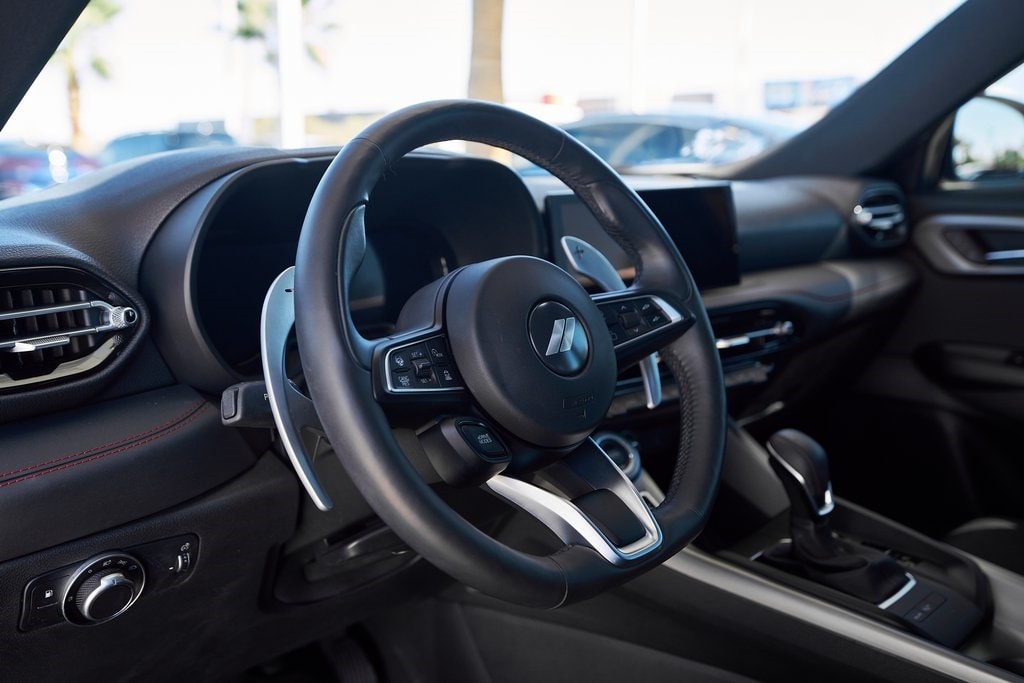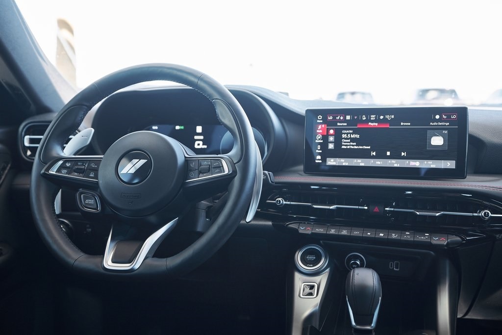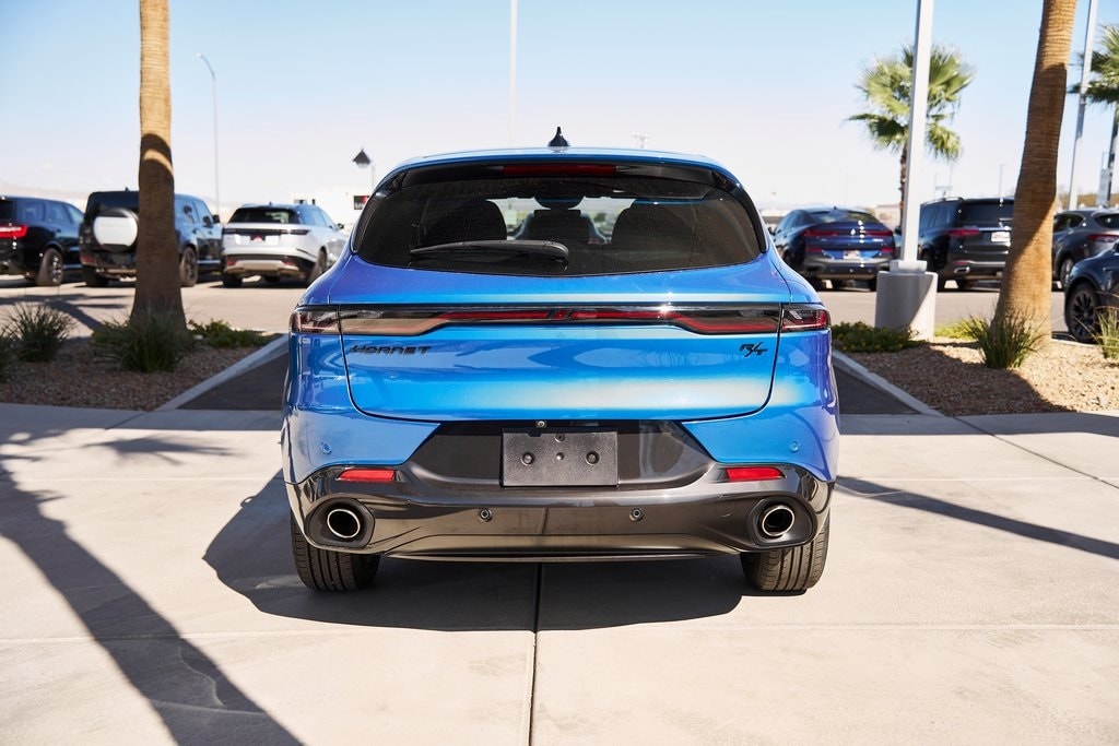 The 2024 Dodge Hornet R/T brings muscle car spirit into the compact crossover segment, blending electrified performance with everyday practicality. As Dodges first plug-in hybrid, it delivers the kind of power, agility, and style that redefines what a modern performance SUV can be. At its core is a 1.3-liter turbocharged engine paired with an electric motor, producing a combined 288 horsepower and 383 lb-ft of torque, making it the most powerful C-SUV in its class. The 6-speed automatic transmission and standard all-wheel drive ensure confident performance. Unique to the R/T, PowerShot mode provides an on-demand 30-horsepower burst, propelling the Hornet from 0-60 mph in just 5.6 seconds. With up to 32 miles of pure electric driving range, it balances thrilling performance with efficiency. The design is bold and unmistakably Dodge, with a wide stance, aggressive grille, and muscular lines that hint at its athletic character. The R/T trim features performance-inspired styling cues, dual exhaust outlets, and 18-inch Graphite wheels. Inside, the cabin is modern and driver-focused. A 12.3-inch digital cluster and 10.25-inch Uconnect 5 infotainment system put performance data, navigation, and connectivity at your fingertips.