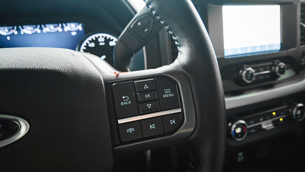 4-Wheel Disc Brakes, 6 Speakers, 8-Way Power Driver's Seat w/Power Lumbar, 8" Productivity Screen in Instrument Cluster, ABS brakes, Air Conditioning, AM/FM radio, Auto High-beam Headlights, Auto-Dimming Rear-View Mirror, Brake assist, Bumpers: chrome, Class IV Trailer Hitch Receiver, Cloth 40/20/40 Front Seat, Compass, Delay-off headlights, Driver door bin, Driver vanity mirror, Dual front impact airbags, Dual front side impact airbags, Dual Zone Automatic Temperature Control, Electronic Stability Control, Emergency communication system: SYNC 4 911 Assist, Equipment Group 301A Mid, Exterior Parking Camera Rear, Front anti-roll bar, Front Center Armrest w/Storage, Front fog lights, Front reading lights, Front wheel independent suspension, Fully automatic headlights, GVWR: 6,470 lbs Payload Package, Heated door mirrors, Illuminated entry, Leather-Wrapped Steering Wheel, Low tire pressure warning, Occupant sensing airbag, Outside temperature display, Overhead airbag, Overhead console, Passenger door bin, Passenger vanity mirror, Power door mirrors, Power Glass Heated Sideview Mirrors, Power steering, Power windows, Radio data system, Radio: AM/FM SiriusXM w/360L, Radio: AM/FM Stereo w/6 Speakers, Rear reading lights, Rear step bumper, Rear Under-Seat Storage, Rear window defroster, Remote keyless entry, Soft Folding Tonneau Pickup Box Cover, Speed-sensing steering, Split folding rear seat, Steering wheel mounted audio controls, SYNC 4, SYNC 4 w/Enhanced Voice Recognition, Tachometer, Telescoping steering wheel, Tilt steering wheel, Tough Bed Spray-In Bedliner, Traction control, Trip computer, Voltmeter. Odometer is 27078 miles below market average!