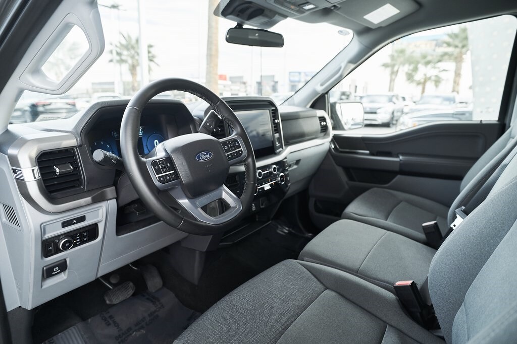 The 2025 Ford F-150 continues the legacy of America's best-selling truck. Positioned as the sweet spot in the F-150 lineup, the XLT trim strikes the ideal balance between practicality and modern features, making it one of the most well-rounded trucks on the market today. Under the hood lies the 3.5-liter EcoBoost twin-turbocharged V6, delivering an impressive 400 horsepower and 500 lb-ft of torque, paired with a 10-speed automatic transmission and electronic 4x4 system. The result is smooth yet commanding performance, ideal for towing, hauling, or weekend adventures. When properly equipped, the F-150 XLT can tow up to 13,500 pounds and handle payloads over 2,000 pounds, all while maintaining excellent fuel efficiency thanks to Ford's intelligent engine management and lightweight aluminum body construction. The 2025 model introduces subtle refinements to its design. A refreshed grille and LED lighting signature, sculpted lines, and durable aluminum alloy wheels give the XLT a confident, contemporary look. The high-strength, military-grade aluminum-alloy body and fully boxed steel frame ensure true durability. Inside, the F-150 XLT blends rugged functionality with modern comfort. The spacious cabin features premium cloth seating, a 12-inch infotainment touchscreen, and digital gauge cluster for seamless control of navigation, connectivity, and vehicle settings. Apple CarPlay, Android Auto, and FordPass Connect keep drivers connected anywhere, while advanced driver aids, like Ford Co-Pilot360 and lane-keeping assist, enhance safety and confidence on every journey.