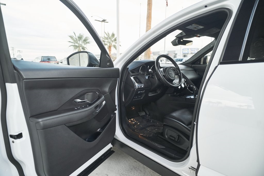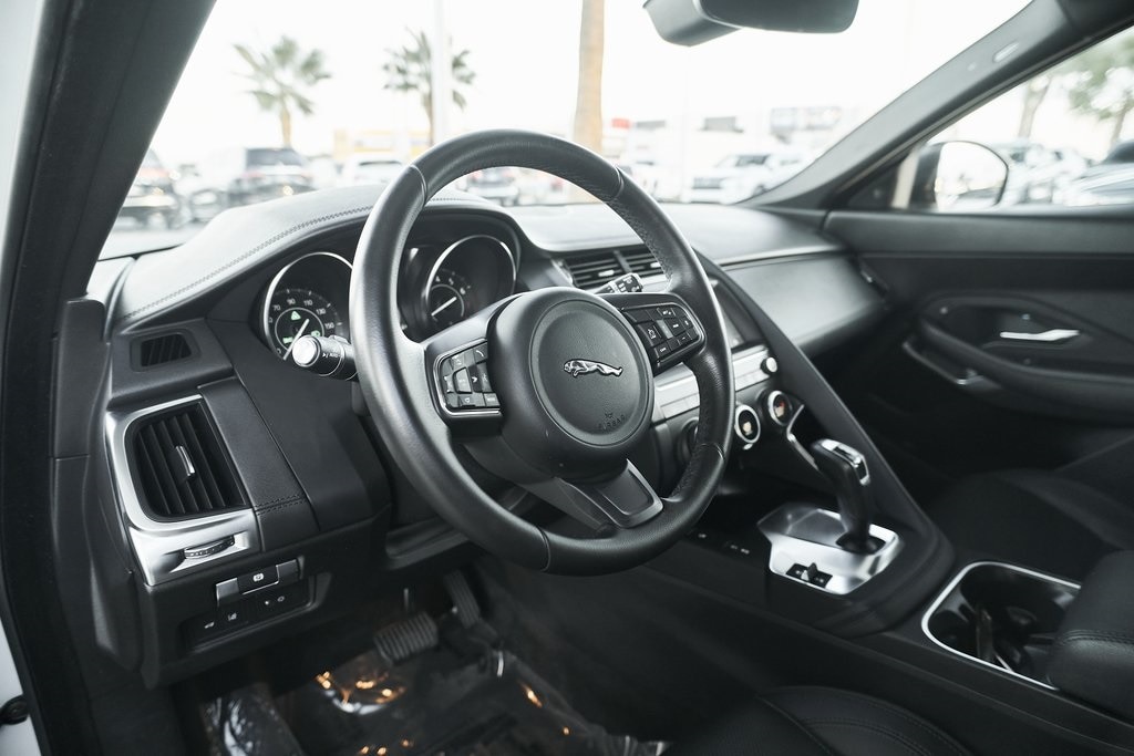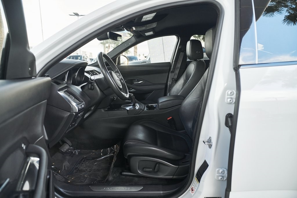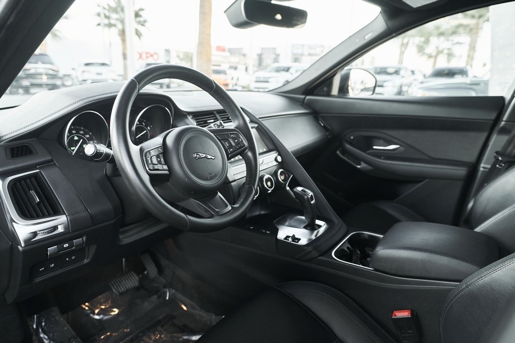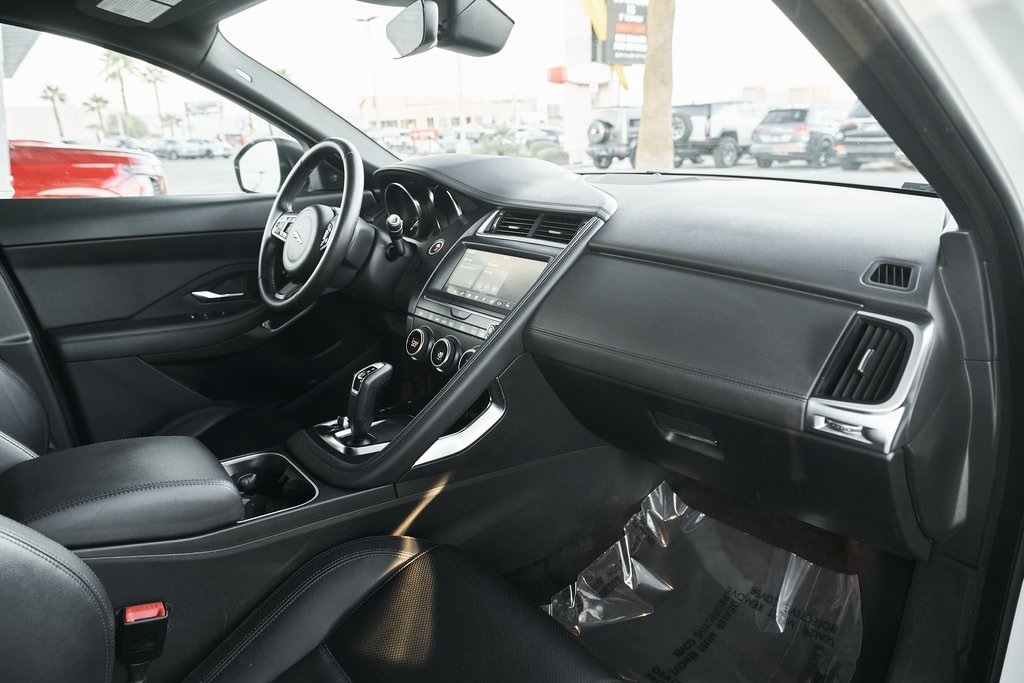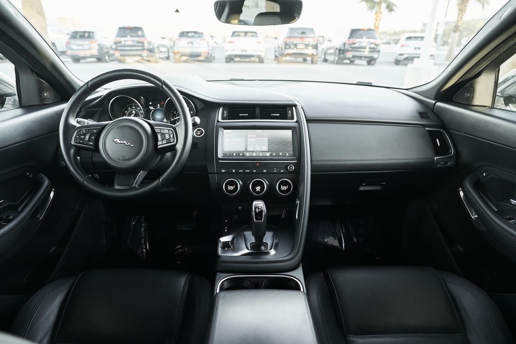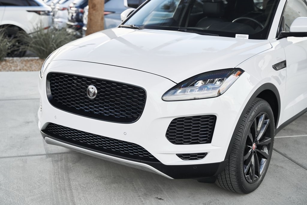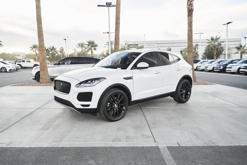 The 2020 Jaguar E-PACE embodies the spirit of the Jaguar brand in a compact, agile SUV. As Jaguar's first compact performance SUV, the E-PACE delivers the ideal blend of dynamic handling and everyday practicality, wrapped in urban style. Powering the E-PACE is a 2.0-liter turbocharged four-cylinder engine, producing 246 horsepower and 269 lb-ft of torque, paired with a 9-speed automatic transmission and standard all-wheel drive. Visually, the E-PACE carries unmistakable Jaguar DNA. Its sculpted proportions, muscular haunches, and bold grille echo the F-TYPE sports car, while sleek LED headlights and gloss black exterior trim add an unmistakable sense of motion. Inside, the cabin is crafted for both comfort and connection. Premium materials, grained leather upholstery, metallic trim, and soft-touch surfaces, create an inviting atmosphere. The Touch Pro infotainment system with a 10-inch touchscreen keeps you seamlessly connected, offering navigation, Apple CarPlay, and Android Auto. The driver's cockpit is oriented for engagement, while features like blind spot assist and adaptive cruise control elevate every journey. With its sharp styling, advanced features, and everyday usability, it's proof that a practical SUV can fit seamlessly into any lifestyle.