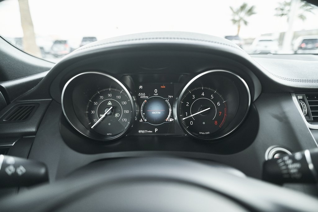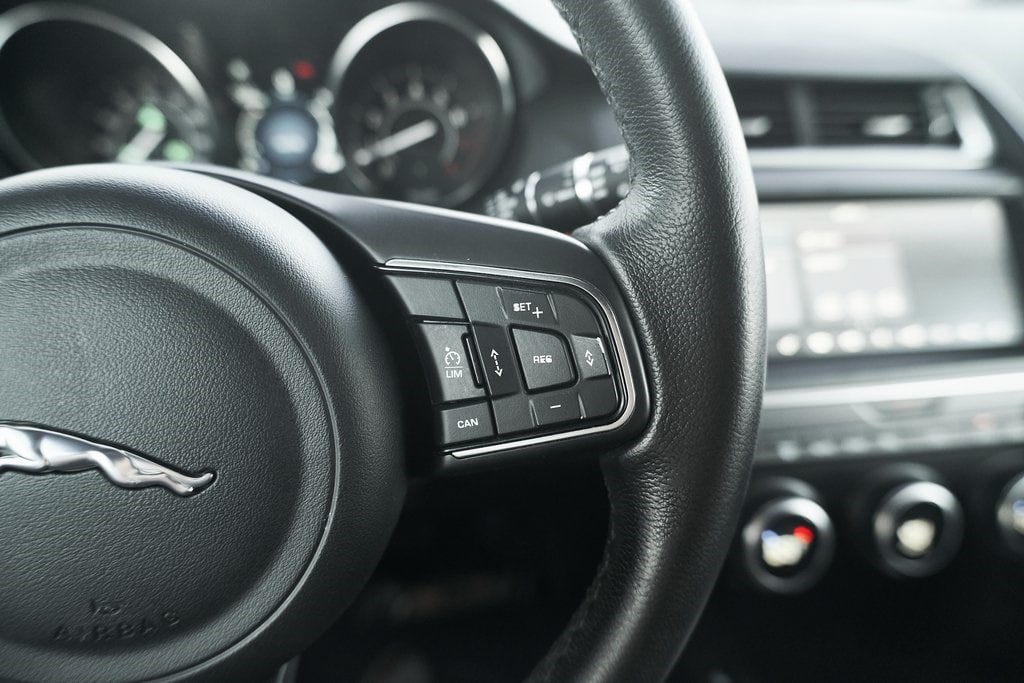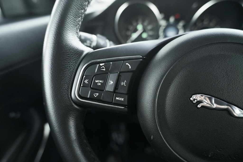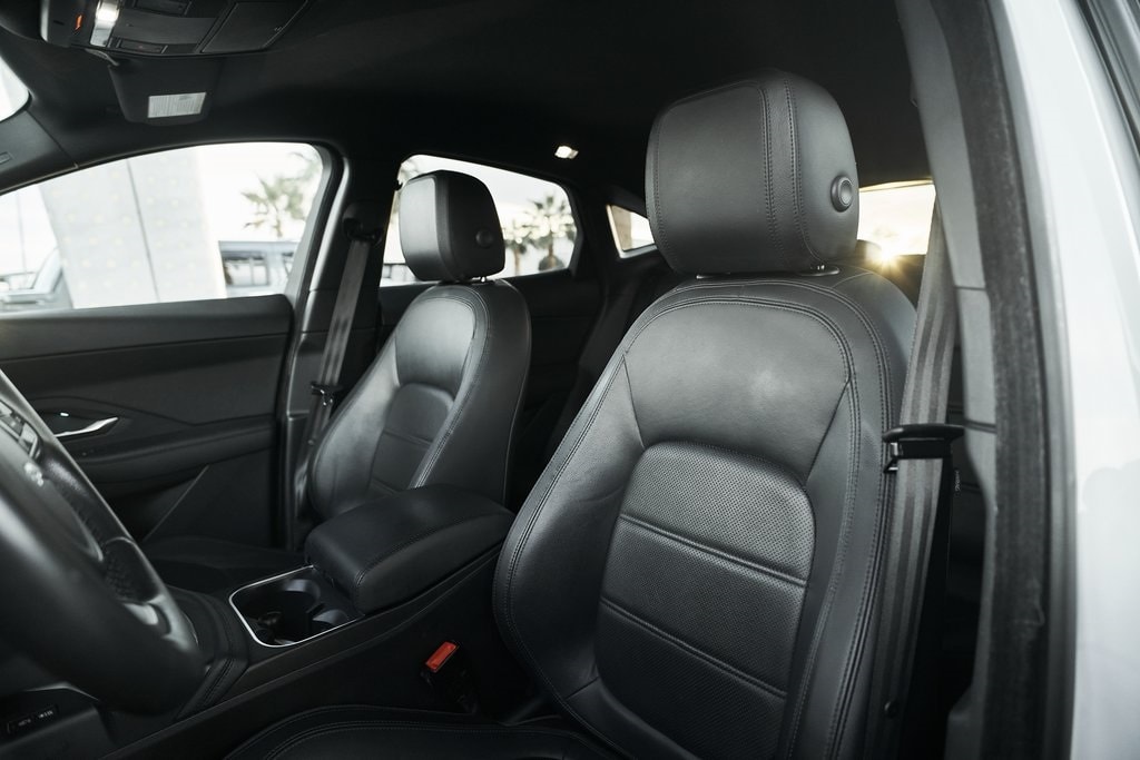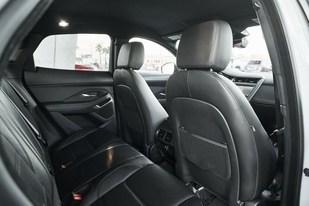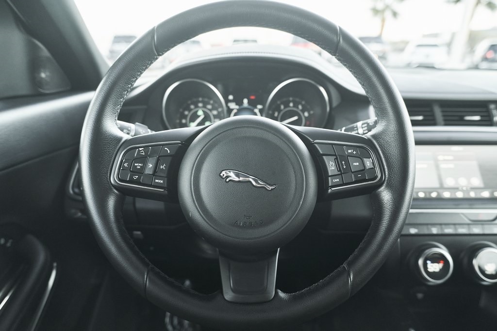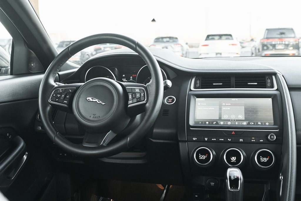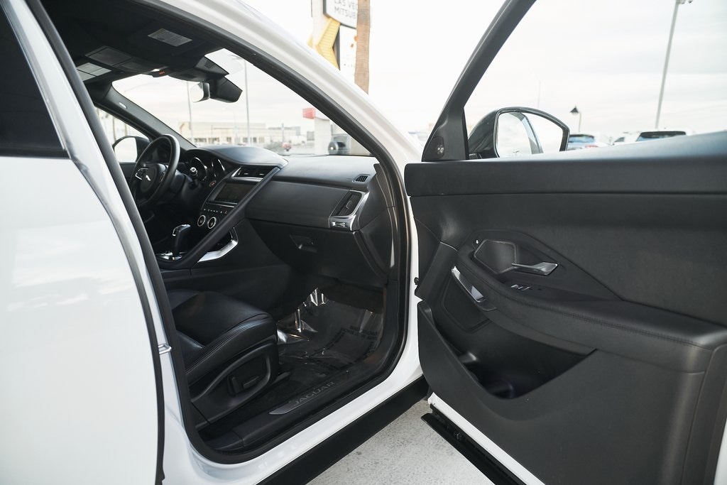 The 2020 Jaguar E-PACE embodies the spirit of the Jaguar brand in a compact, agile SUV. As Jaguar's first compact performance SUV, the E-PACE delivers the ideal blend of dynamic handling and everyday practicality, wrapped in urban style. Powering the E-PACE is a 2.0-liter turbocharged four-cylinder engine, producing 246 horsepower and 269 lb-ft of torque, paired with a 9-speed automatic transmission and standard all-wheel drive. Visually, the E-PACE carries unmistakable Jaguar DNA. Its sculpted proportions, muscular haunches, and bold grille echo the F-TYPE sports car, while sleek LED headlights and gloss black exterior trim add an unmistakable sense of motion. Inside, the cabin is crafted for both comfort and connection. Premium materials, grained leather upholstery, metallic trim, and soft-touch surfaces, create an inviting atmosphere. The Touch Pro infotainment system with a 10-inch touchscreen keeps you seamlessly connected, offering navigation, Apple CarPlay, and Android Auto. The driver's cockpit is oriented for engagement, while features like blind spot assist and adaptive cruise control elevate every journey. With its sharp styling, advanced features, and everyday usability, it's proof that a practical SUV can fit seamlessly into any lifestyle.