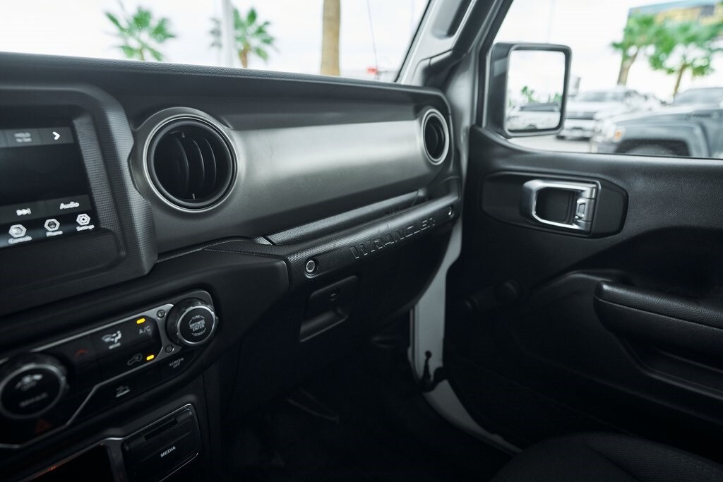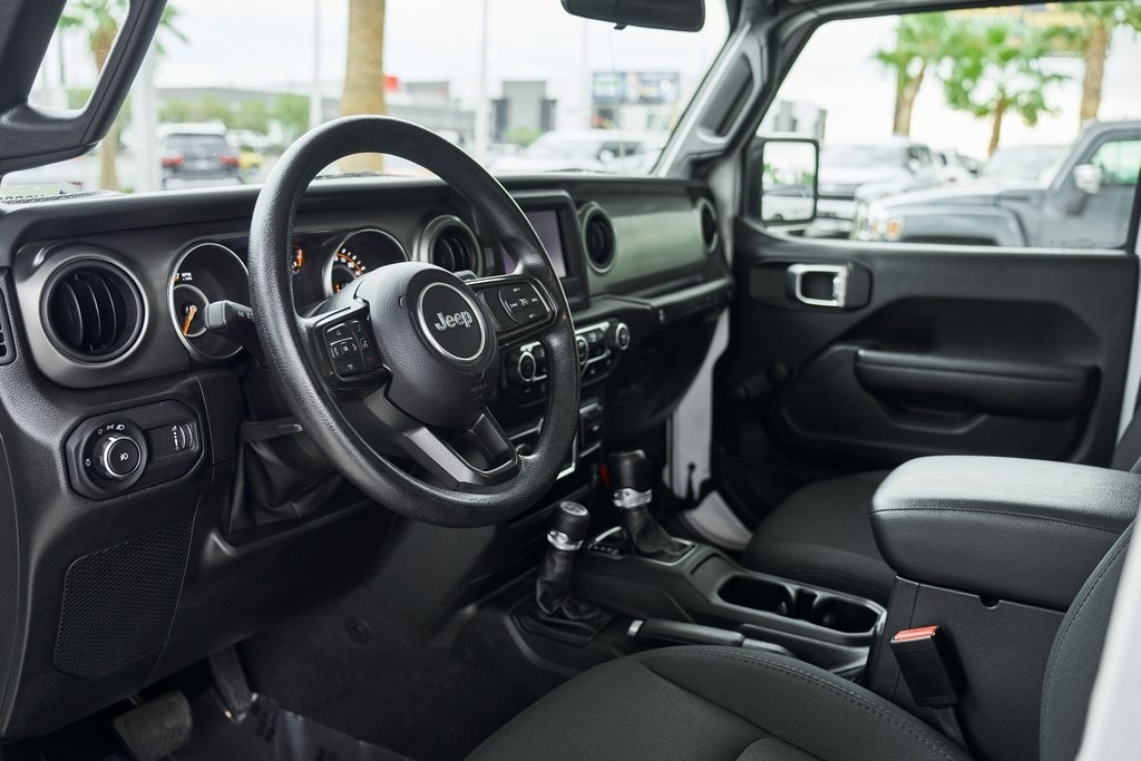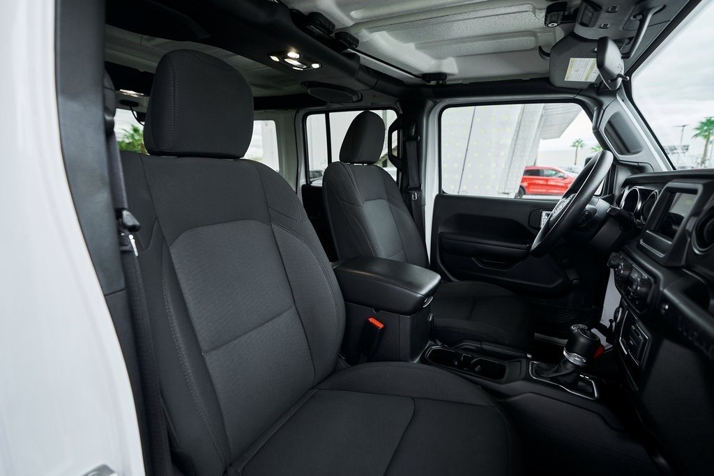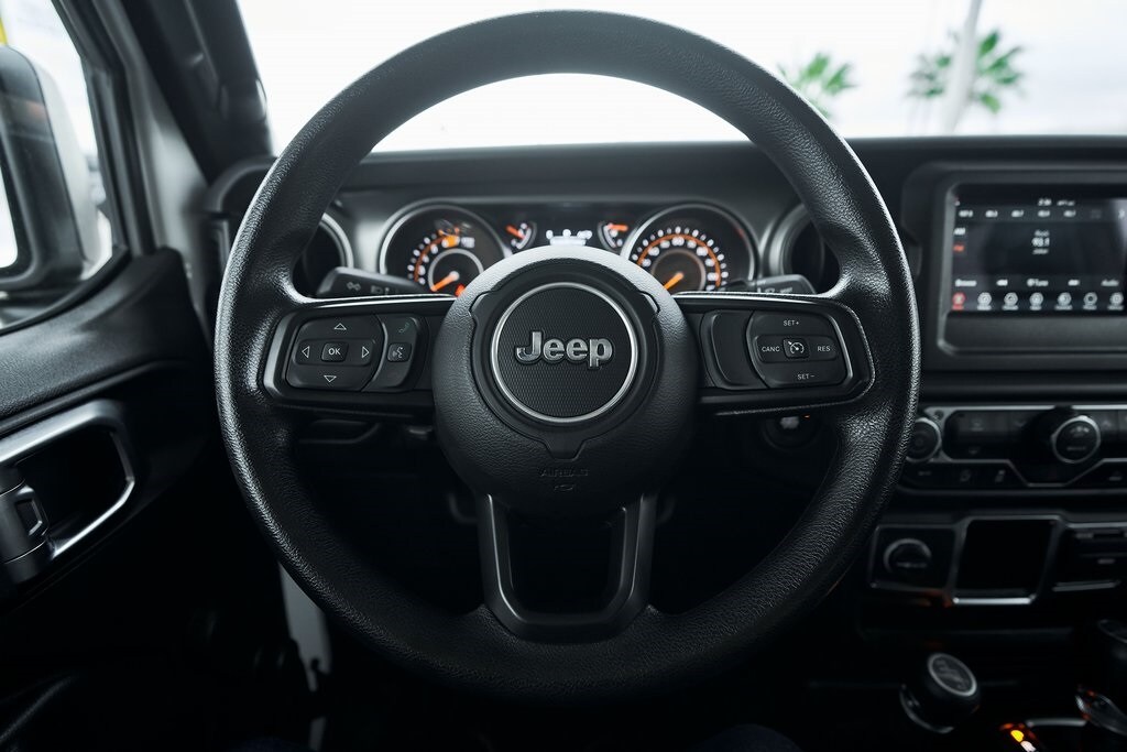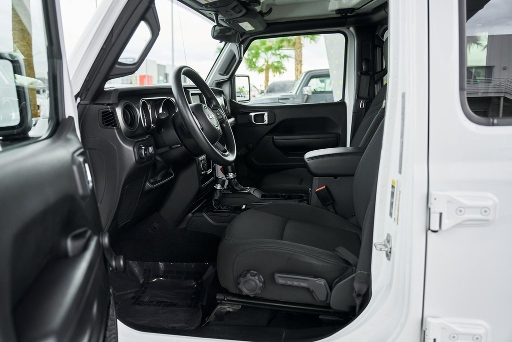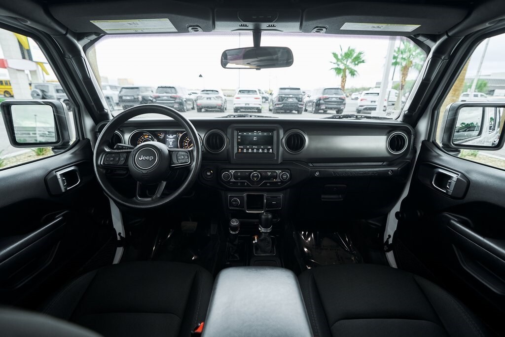 The 2023 Jeep Wrangler carries forward one of the most legendary names in automotive history. With its unmistakable design, open-air versatility, and uncompromising off-road ability, the Wrangler remains the ultimate symbol of freedom on four wheels. Powering the Wrangler is a tried and true 3.6-liter Pentastar V6 engine delivering 285 horsepower and 260 lb-ft of torque, paired with an 8-speed automatic transmission. Jeep's proven Command-Trac 4x4 system provides part-time four-wheel drive with a 2-speed transfer case, allowing drivers to tackle everything from deep snow to rocky trails with confidence. With solid front and rear axles, the Wrangler is engineered to conquer terrain that would stop ordinary SUVs in their tracks. The iconic design of the Wrangler blends heritage and functionality. Its removable doors, 3-piece hardtop make it the most open-air 4x4 on the market. The four-door Unlimited configuration adds practicality, offering ample passenger room and flexible cargo space without sacrificing its classic Jeep character. Inside, the cabin combines utility with modern comfort. Durable materials and easy-to-clean surfaces make it ready for adventure. Air conditioning, push-button start, and power windows and locks bring everyday convenience. Built to go anywhere and do anything, the 2023 Jeep Wrangler represents the pure spirit of adventure with the comfort and technology to make every drive an experience.