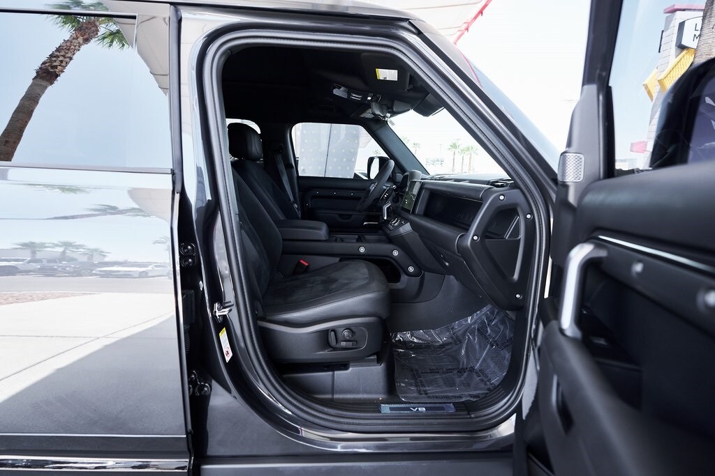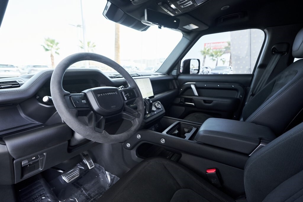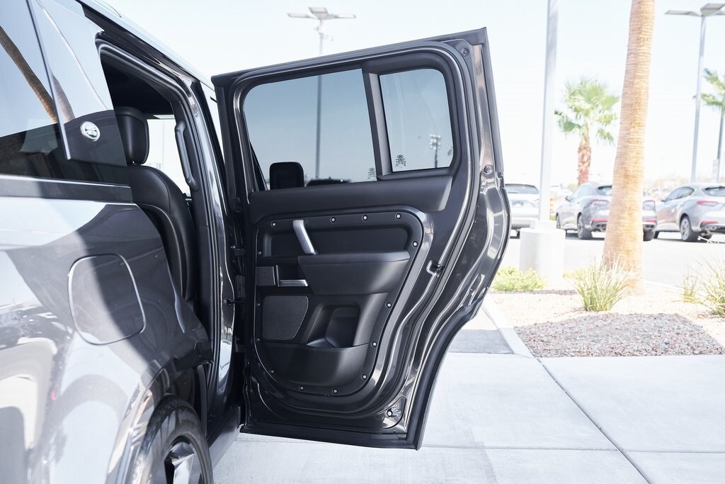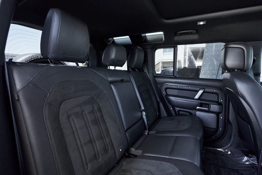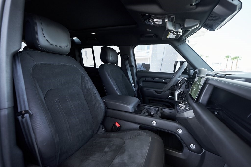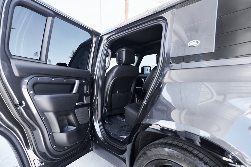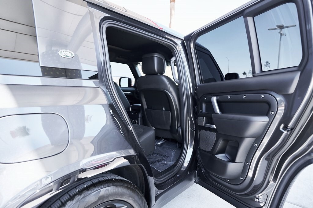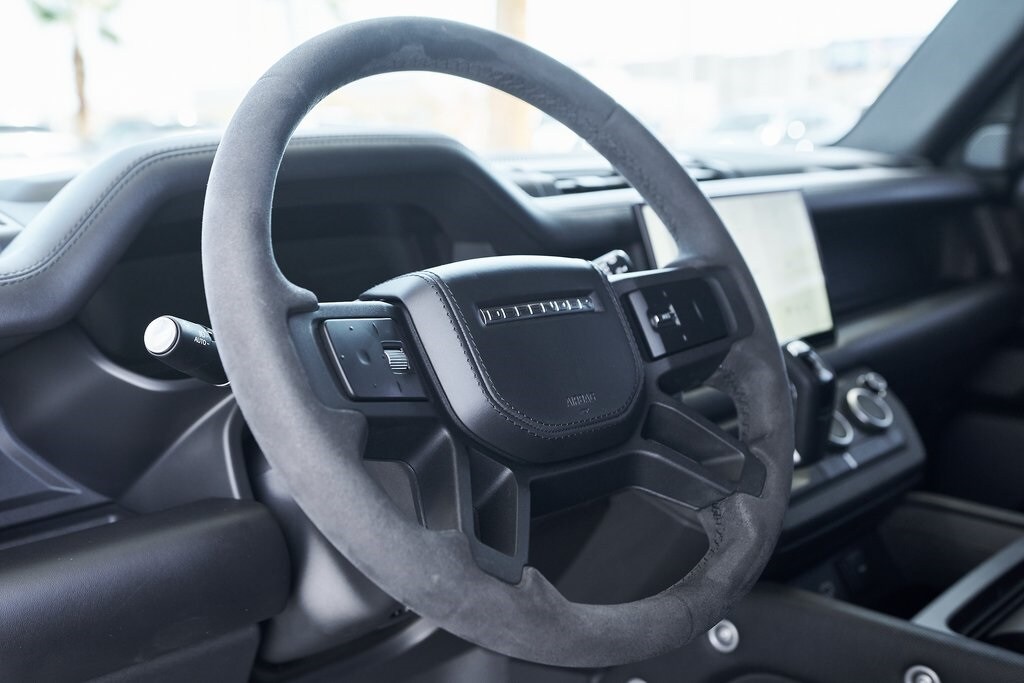 The 2023 Land Rover Defender 110 represents the peak of the Defender lineup: a vehicle that blends rugged expedition capability with stealthy, modern sophistication. Finished in exclusive Carpathian Grey premium paint, this limited-production flagship commands attention whether parked in a city penthouse garage or scaling a remote mountain pass. Beneath its utilitarian exterior lies a supercharged 5.0-liter V8 producing 518 horsepower and 461 lb-ft of torque, paired to an 8-speed automatic transmission and Land Rover's legendary all-wheel-drive system. The Defender V8's electronic active rear differential, adaptive dynamics, and All-Terrain Progress Control make it equally at home carving roads or tackling deep mud, snow, and rock. Inside, the cabin offers a refined command center with Windsor leather, Dinamica suedecloth, and Robustec textile trim, perfectly blending luxury with durability. Heated front and rear seats, a Pivi Pro infotainment system with a 11.4-inch touchscreen, a Meridian Surround Sound System, and a configurable digital driver display ensure cutting-edge comfort and connectivity. For those who can't choose between luxury and adventure, the Land Rover Defender is an SUV built to conquer the extremes while still delivering first-class comforts.