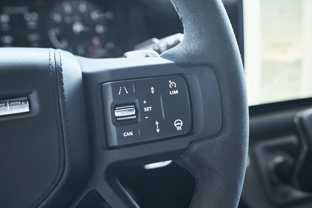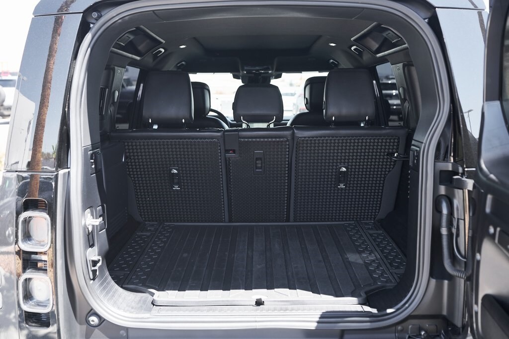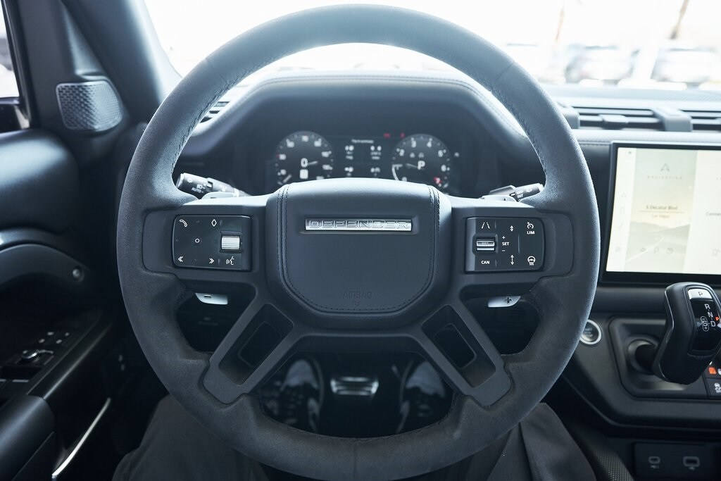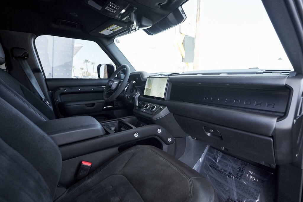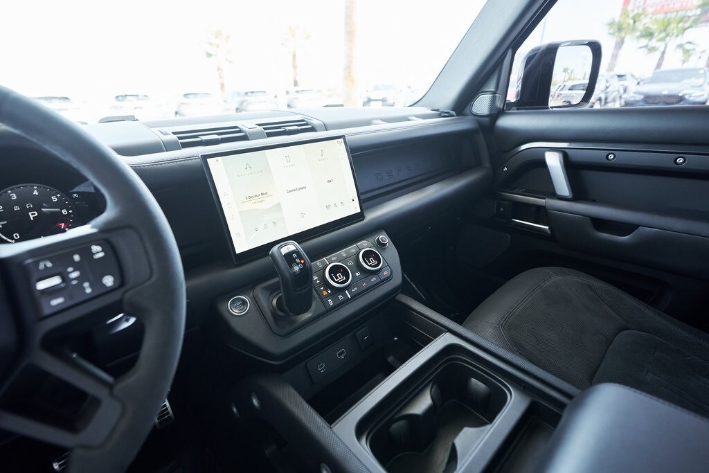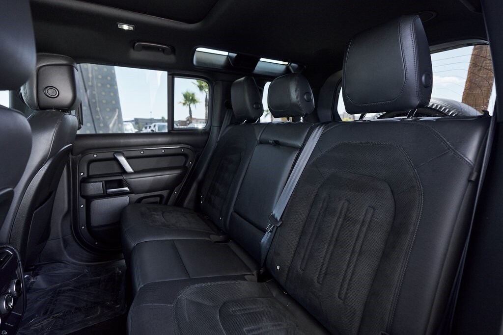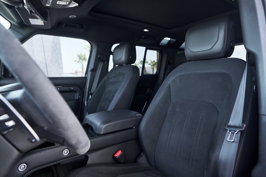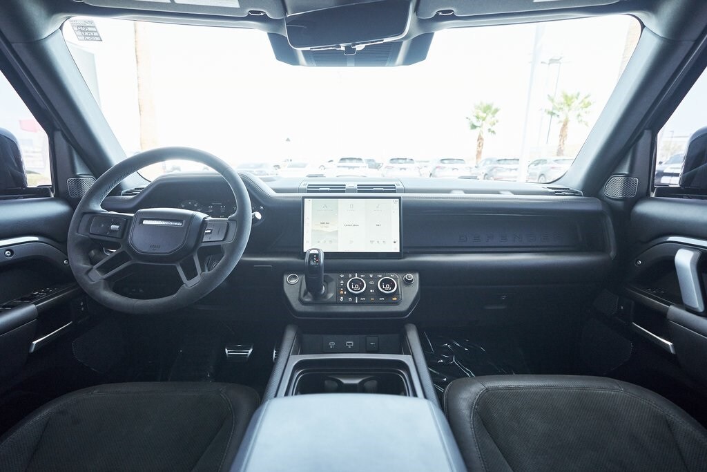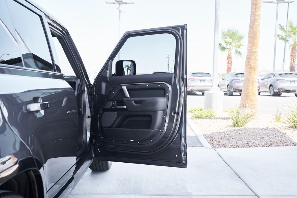 The 2023 Land Rover Defender 110 represents the peak of the Defender lineup: a vehicle that blends rugged expedition capability with stealthy, modern sophistication. Finished in exclusive Carpathian Grey premium paint, this limited-production flagship commands attention whether parked in a city penthouse garage or scaling a remote mountain pass. Beneath its utilitarian exterior lies a supercharged 5.0-liter V8 producing 518 horsepower and 461 lb-ft of torque, paired to an 8-speed automatic transmission and Land Rover's legendary all-wheel-drive system. The Defender V8's electronic active rear differential, adaptive dynamics, and All-Terrain Progress Control make it equally at home carving roads or tackling deep mud, snow, and rock. Inside, the cabin offers a refined command center with Windsor leather, Dinamica suedecloth, and Robustec textile trim, perfectly blending luxury with durability. Heated front and rear seats, a Pivi Pro infotainment system with a 11.4-inch touchscreen, a Meridian Surround Sound System, and a configurable digital driver display ensure cutting-edge comfort and connectivity. For those who can't choose between luxury and adventure, the Land Rover Defender is an SUV built to conquer the extremes while still delivering first-class comforts.