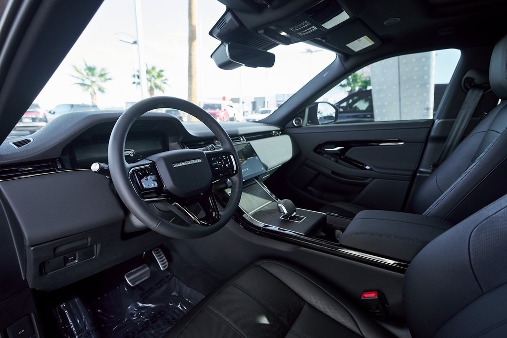The 2024 Range Rover Evoque Dynamic SE brings a refined fusion of elegance, capability, and technology to the compact luxury crossover segment. Under the hood, the Evoque is powered by a 2.0-liter turbocharged inline-4 engine that delivers 246 horsepower and 269 lb-ft of torque, paired to a 9-speed automatic gearbox and full-time all-wheel drive. What really defines the Dynamic SE is its balance of composure and flair. The Dynamic SE trim adds visual enhancements like copper and gloss black accents, darker interior trims, and distinct exterior styling cues that emphasize a sportier, more modern appearance. Inside, the Evoque blends luxury materials and smart ergonomics. The cabin offers premium leather seating, a panoramic roof, and an interior layout that puts comfort and connectivity first. The infotainment system features a high-definition touchscreen with Apple CarPlay and Android Auto, and Land Rover's Pivi Pro software ensures intuitive access to navigation, media, and vehicle controls. Ambient lighting, heated front seats, and driver-assistance features such as adaptive cruise control and blind-spot monitoring round out the interior's thoughtful touches.