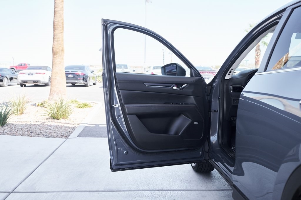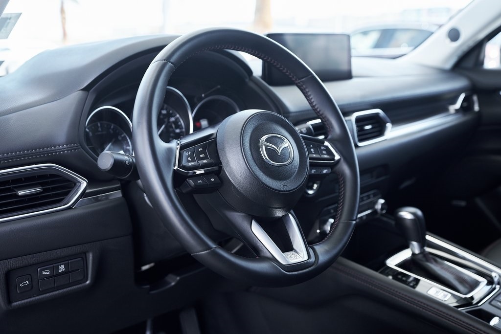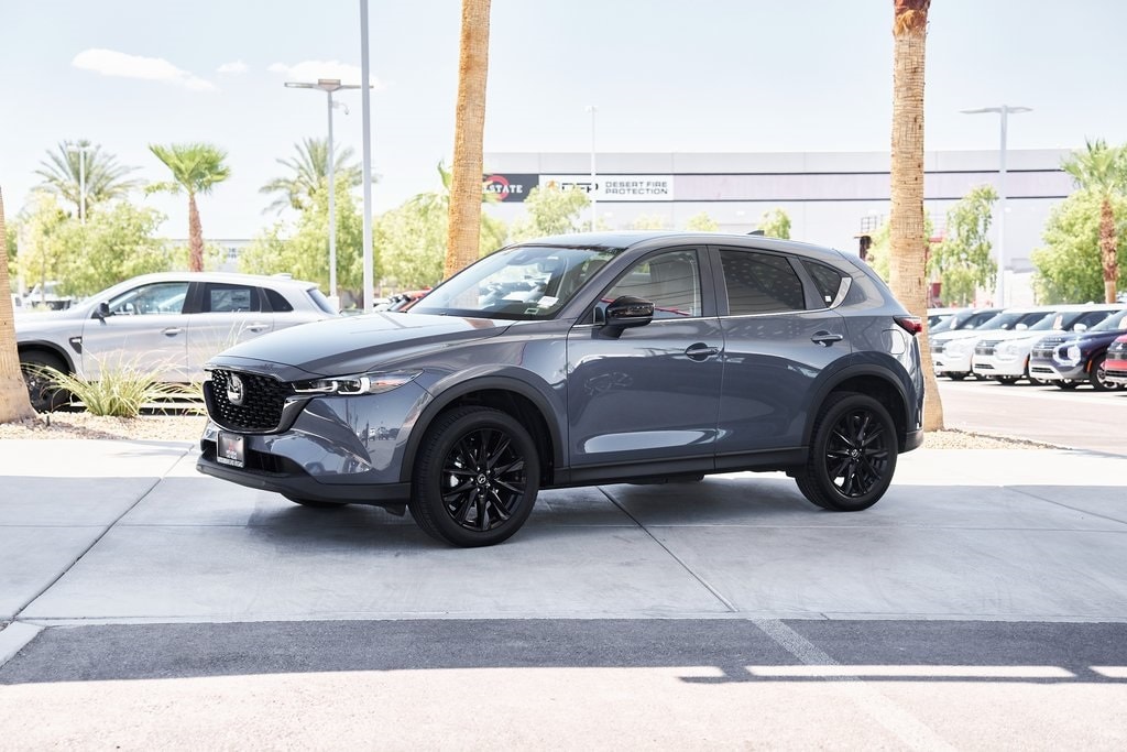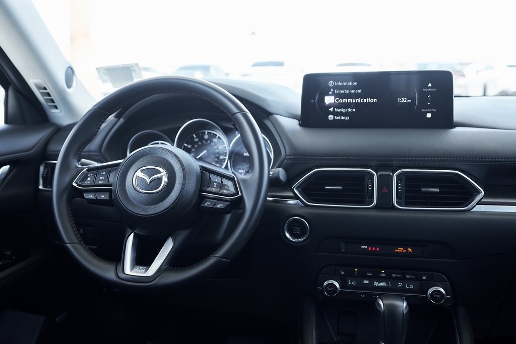 Step into the Mazda CX-5 Carbon Edition and youll find a blend of premium styling, athletic performance, and refined features. Powered by a responsive 2.5L SKYACTIV-G engine, this AWD SUV delivers confident handling, smooth power, and exceptional ride quality in any condition. Finished in Polymetal Gray Metallic with black 19" alloy wheels, gloss black accents, and a bold black grille, the Carbon Edition makes a statement from every angle. Inside, leather-trimmed seats and dark metallic trim create a sporty, upscale cabin feel. Enjoy features like a 10" center display, wireless Apple CarPlay/Android Auto, dual-zone climate control, heated front seats, and a premium Bose 10-speaker audio system all standard. Advanced safety tech includes Mazdas i-Activsense suite with Adaptive Cruise Control, Blind Spot Monitoring, Lane Keep Assist, and Smart Brake Support. Combining premium design with everyday practicality and Mazda's renowned driving dynamics, the CX-5 Carbon Edition delivers standout value with an edge.