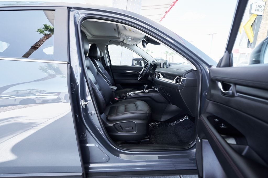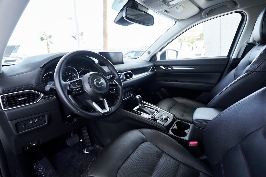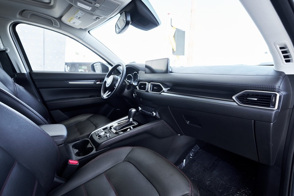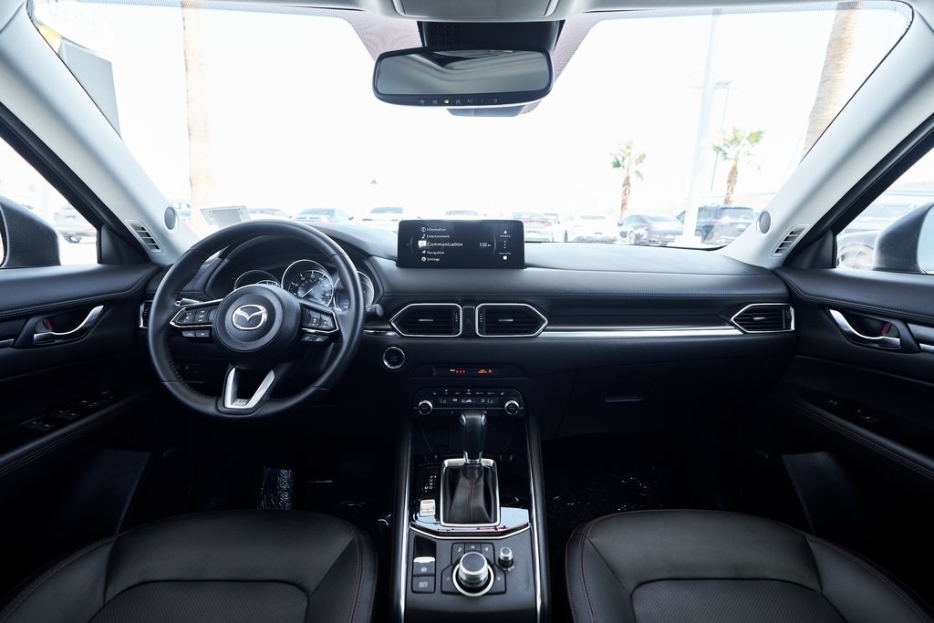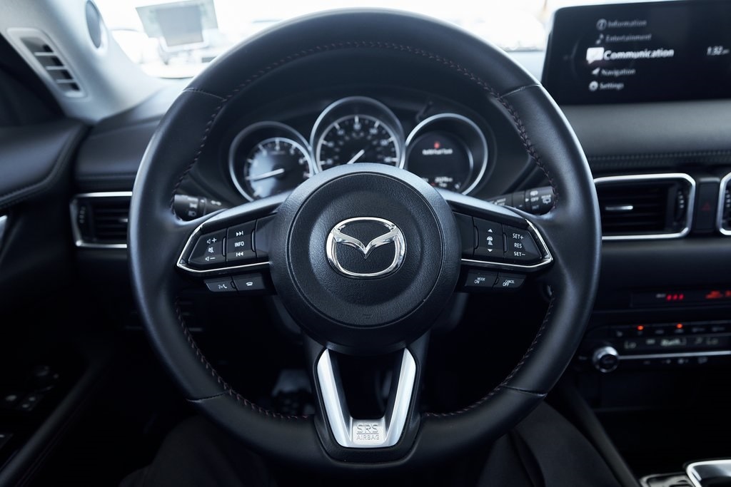Step into the Mazda CX-5 Carbon Edition and youll find a blend of premium styling, athletic performance, and refined features. Powered by a responsive 2.5L SKYACTIV-G engine, this AWD SUV delivers confident handling, smooth power, and exceptional ride quality in any condition. Finished in Polymetal Gray Metallic with black 19" alloy wheels, gloss black accents, and a bold black grille, the Carbon Edition makes a statement from every angle. Inside, leather-trimmed seats and dark metallic trim create a sporty, upscale cabin feel. Enjoy features like a 10" center display, wireless Apple CarPlay/Android Auto, dual-zone climate control, heated front seats, and a premium Bose 10-speaker audio system all standard. Advanced safety tech includes Mazdas i-Activsense suite with Adaptive Cruise Control, Blind Spot Monitoring, Lane Keep Assist, and Smart Brake Support. Combining premium design with everyday practicality and Mazda's renowned driving dynamics, the CX-5 Carbon Edition delivers standout value with an edge.