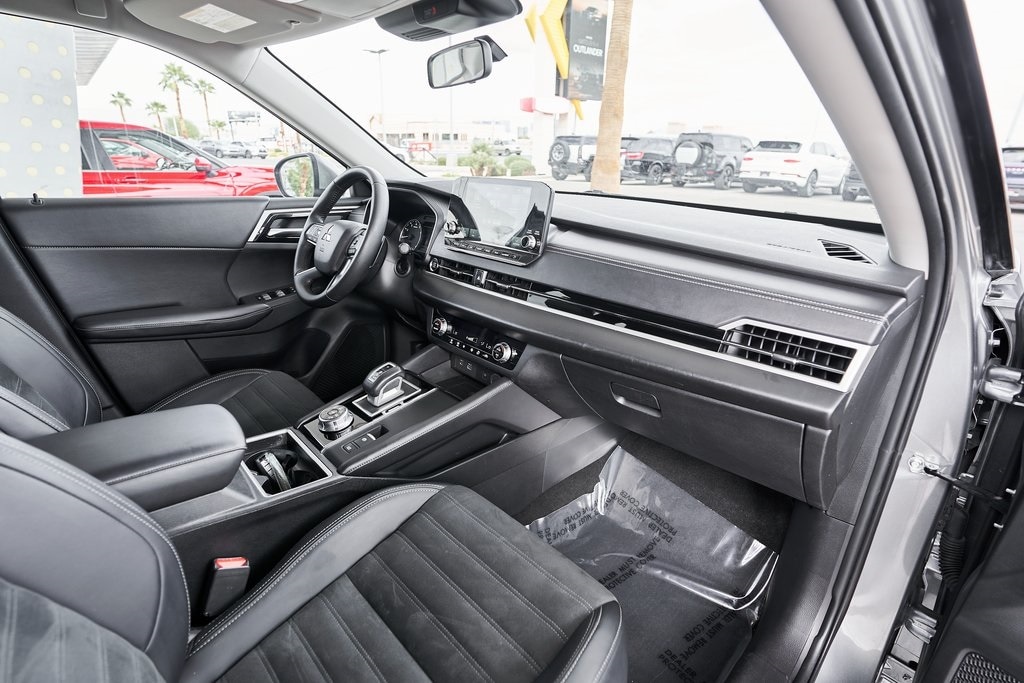 The 2024 Mitsubishi Outlander SE delivers a combination of advanced technology, value, and practical versatility, making it one of the most well-rounded three-row crossovers in its class. With seating for up to seven and a suite of modern features, it's designed to fit both family life and adventurous driving. Powering the Outlander SE is a 2.5-liter 4-cylinder engine paired with a smooth CVT. The SE trim adds a host of premium touches and conveniences. On the exterior, 20-inch alloy wheels, LED headlights, and a power-folding mirror setup enhance its modern, upscale look. Inside, the cabin offers synthetic leather upholstery, an 8-way power driver's seat, heated front seats, dual-zone automatic climate control, and a leather-wrapped steering wheel. Technology is at the forefront, with a 9-inch touchscreen display, wireless Apple CarPlay, Android Auto, and a six-speaker audio system. A proximity key with push-button start adds everyday convenience. Safety remains a core strength of the Outlander SE, with Mitsubishi's MI-PILOT Assist driver aid suite, including Adaptive Cruise Control, Lane Keep Assist, Blind Spot Warning, Forward Collision Mitigation with Pedestrian Detection, and Rear Cross Traffic Alert. Stylish, comfortable, and well-equipped, the 2024 Outlander SE is a versatile daily driver with the peace of mind that comes with Mitsubishi's reputation for reliability and safety.