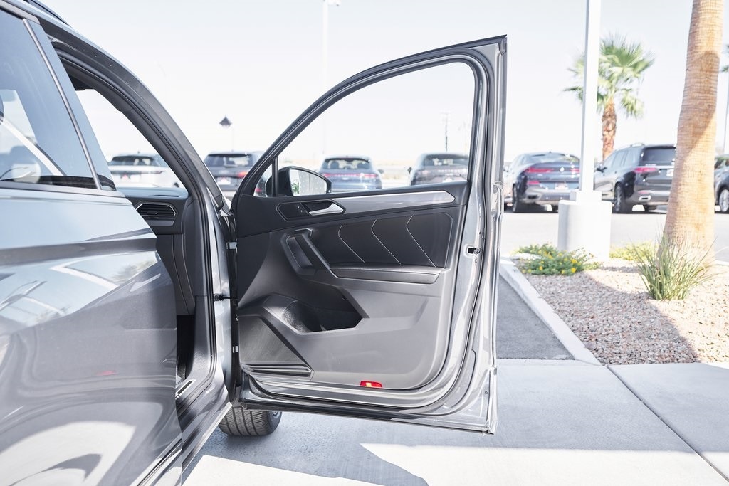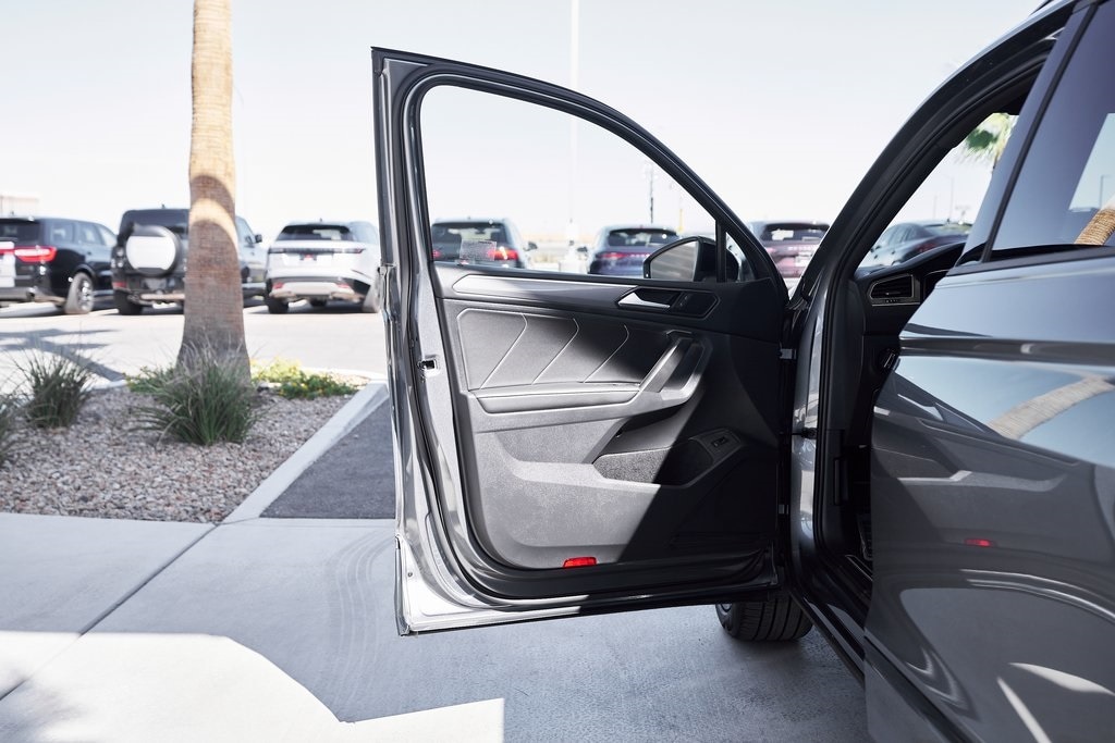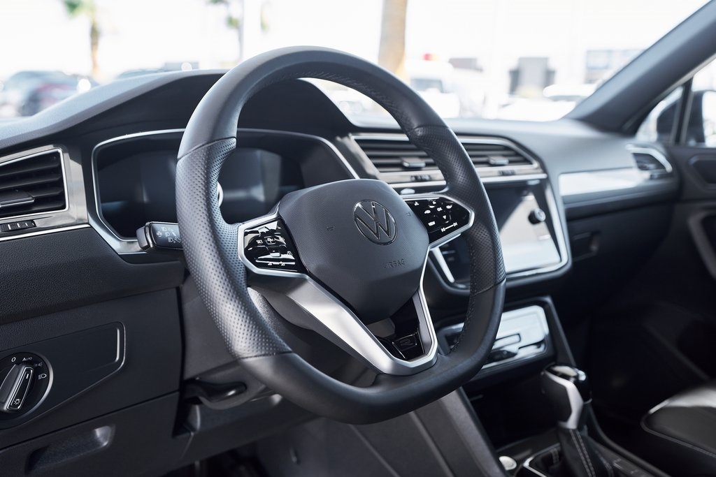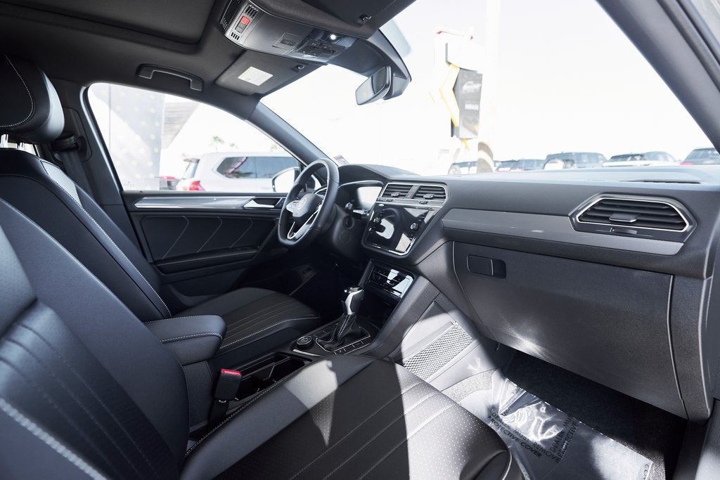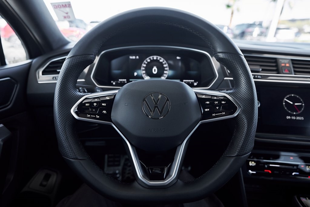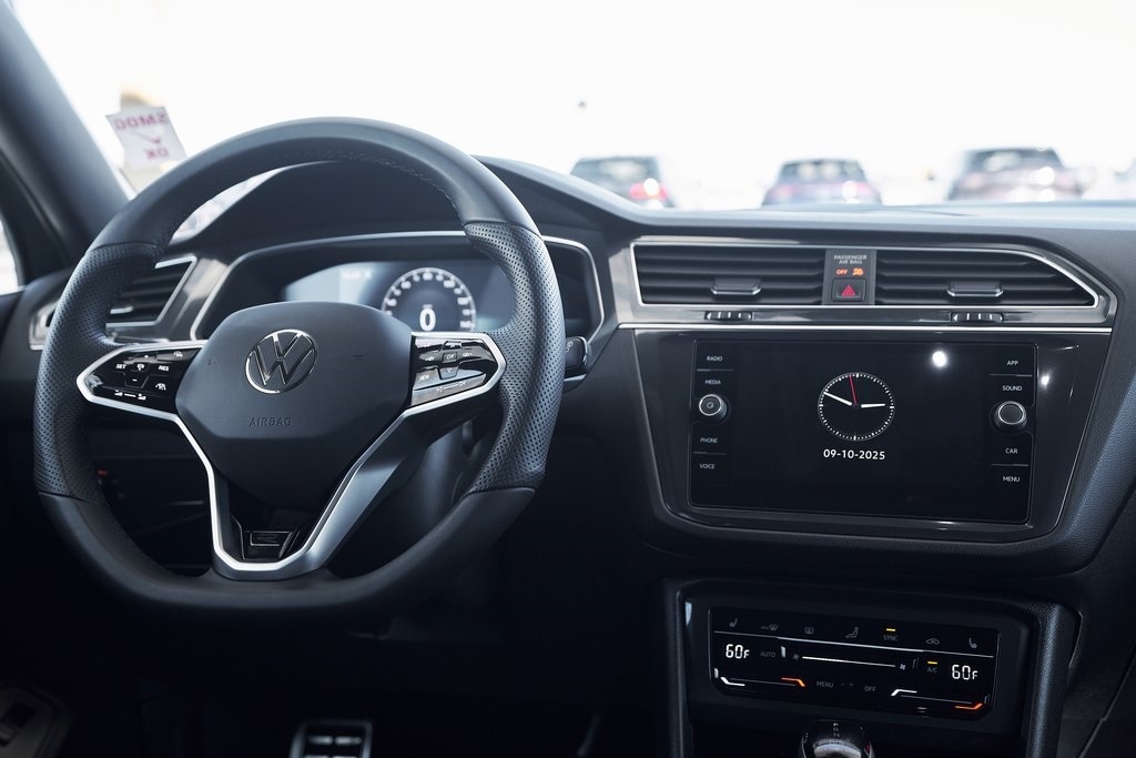 The 2024 Volkswagen Tiguan 2.0T SE R-Line brings together sporty styling, versatile functionality, and refined engineering in a well-balanced package. Under the hood, the Tiguan features a 2.0-liter turbocharged 4-cylinder engine producing 184 horsepower and 221 lb-ft of torque, paired with an 8-speed automatic transmission and 4MOTION all-wheel drive. This combination delivers smooth acceleration and confident handling, making it as comfortable in the city as it is on the open road. The R-Line package adds an edge to the Tiguans exterior, with unique front and rear bumpers, black accents, and bold wheels that give it a more athletic stance. LED headlights and sharp character lines further accentuate Volkswagens clean, modern design language. Inside, the cabin blends practicality with contemporary design. Features include a digital cockpit display and a large touchscreen infotainment system with Apple CarPlay/Android Auto. The R-Line upgrades continue inside with a leather-wrapped sport steering wheel, contrast stitching, and aluminum trim accents. Safety and driver-assistance technology are comprehensive, including Adaptive Cruise Control, Lane Assist, Blind Spot Monitor, and Front Assist. Combined with its solid build quality, the Tiguan delivers peace of mind on every journey.